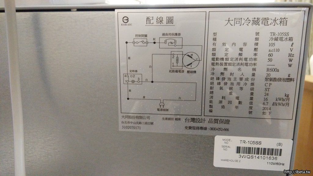 大同105公升環保省電單門冰箱-TR-105SS-S 2014年生產