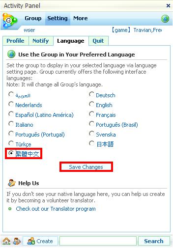 10. 選擇所要顯示的語言後按『Save Changes'。