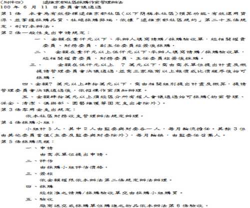 茲將收集到的社區公共事務採購辦法詳如附件