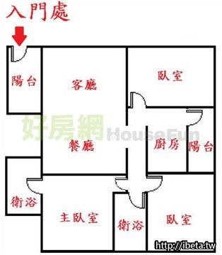 前後陽台,明廳暗房,格局方正,坐東朝西(約偏差5度,但還是可以說是坐東朝西),是台灣人最愛的房屋座向。