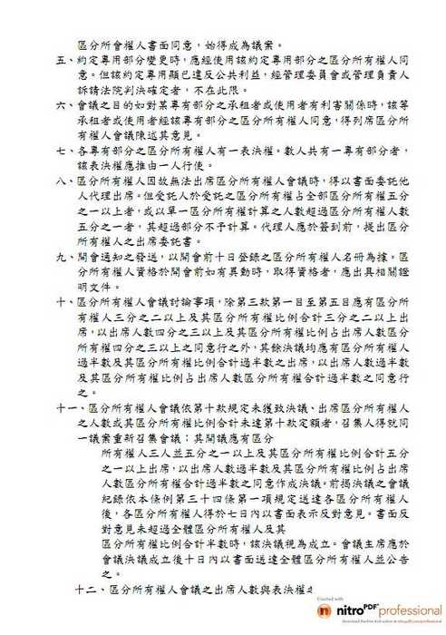 人及其區分 所有權比例合計半數時,該決議視為成立。會議主席應於會議決議成立後十日內以書面送