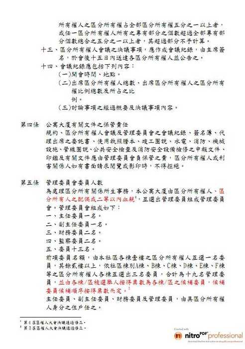 第五條 管理委員會委員人數