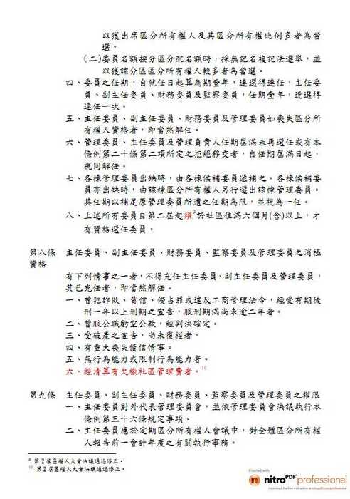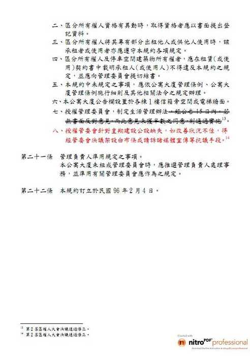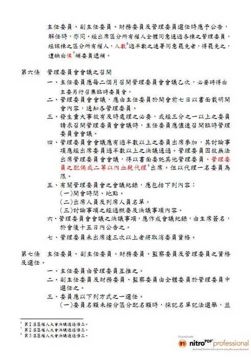 七、授權管理委員會,制定生活管理辦法,經公告15日內,若無書面反對意見,而此意見未獲半數之同意