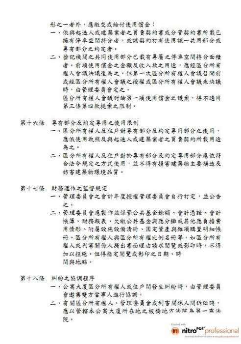 第十六條 專有部分及約定專用之使用限制