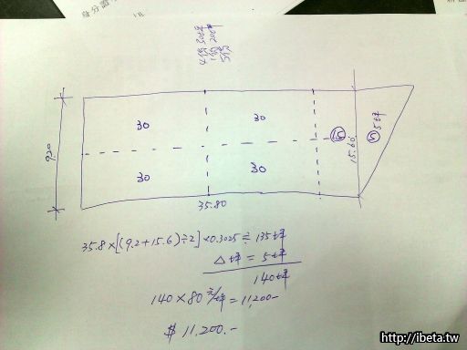 看樣子moliming已經有請地主在下週天氣好時整完地以後,先幫我們劃分4份30坪+1份20坪共五區塊....