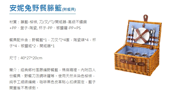[二手買賣] 全新 安妮兔野餐 籐籃 四人餐具 |