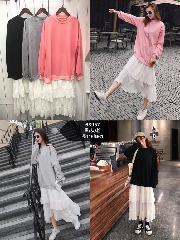 [二手買賣] (全新)休閒風假兩件連身蛋糕裙洋裝-粉&黑各一