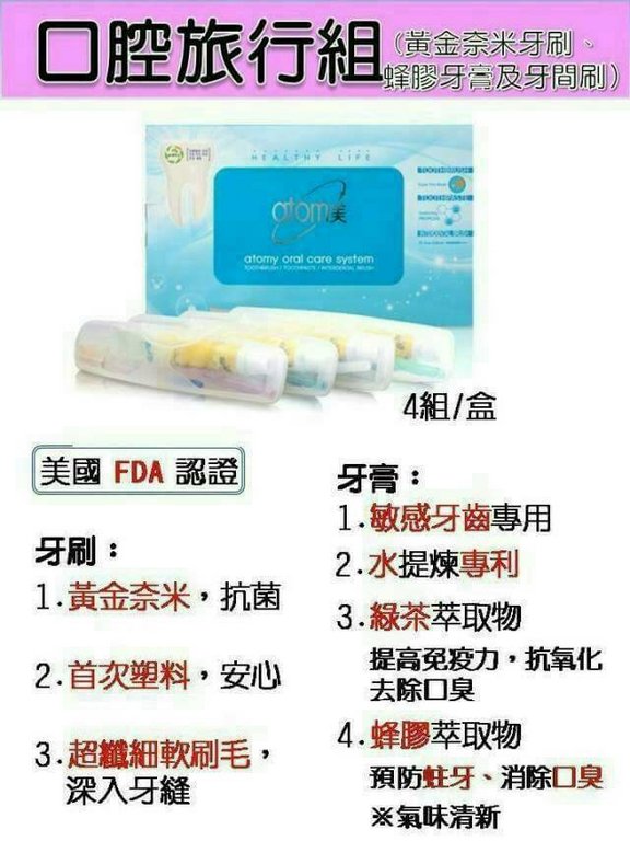 黃金奈米牙刷、蜂膠牙膏、牙間刷