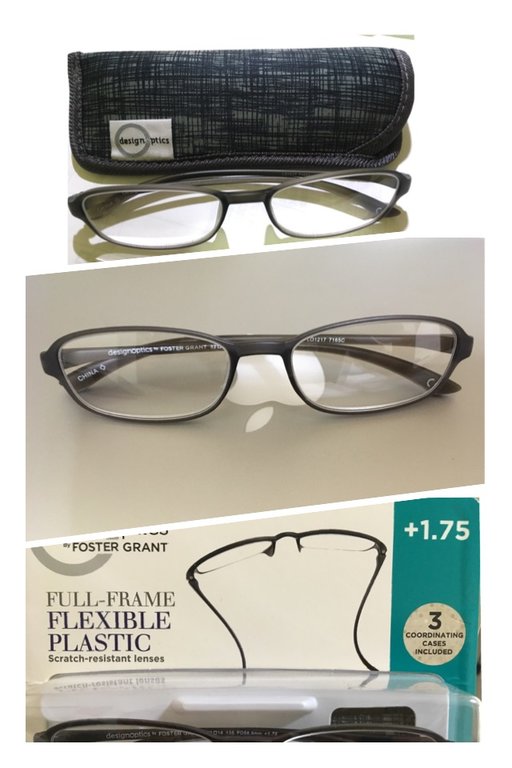 好市多買的老花+1.75度數,3ˋ支裝519元,彈性塑膠匡.