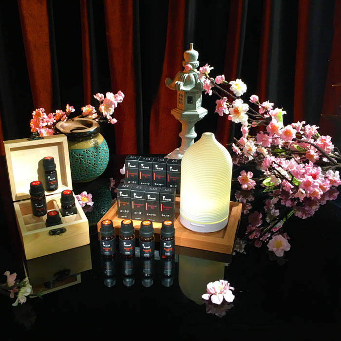 贈品:        10ml精油x8(含:佛手柑x2、玫瑰x2、尤加利x2、薰衣草x2)、松木盒x1