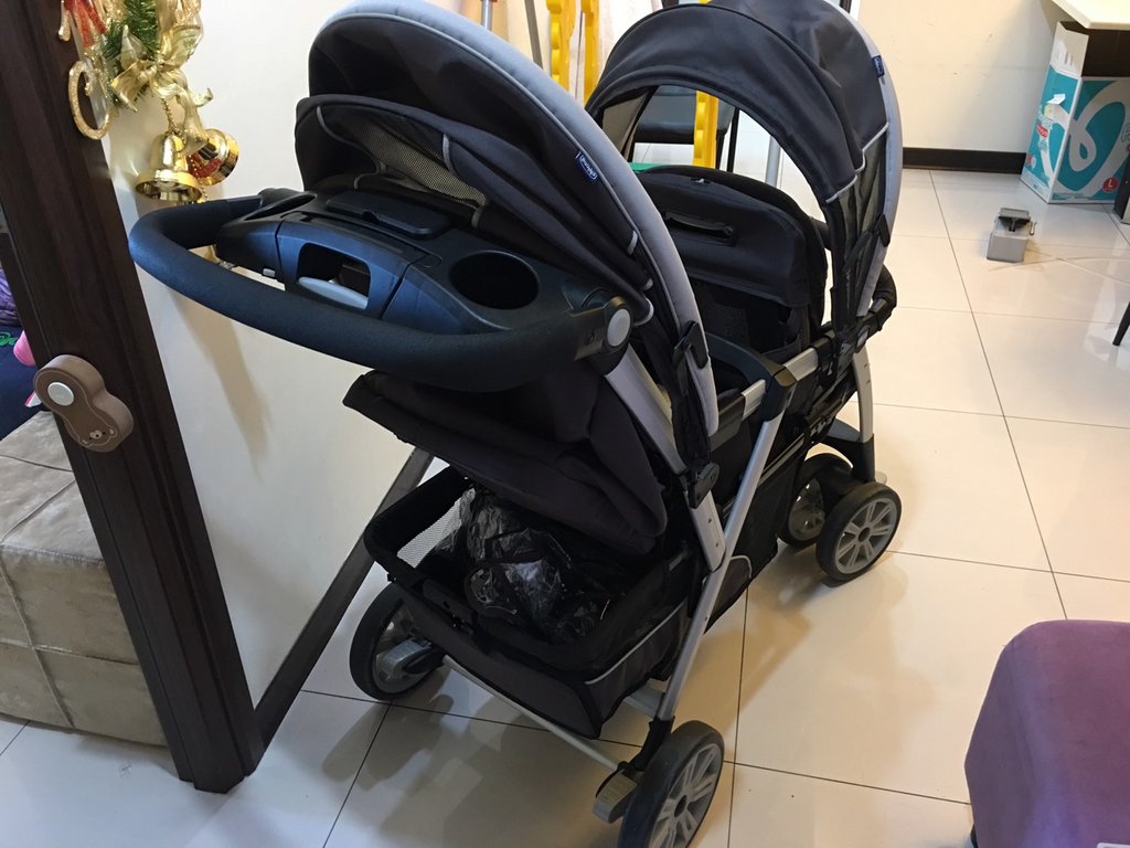 [二手買賣] Chico雙人推車含透明雨罩(已賣出) |