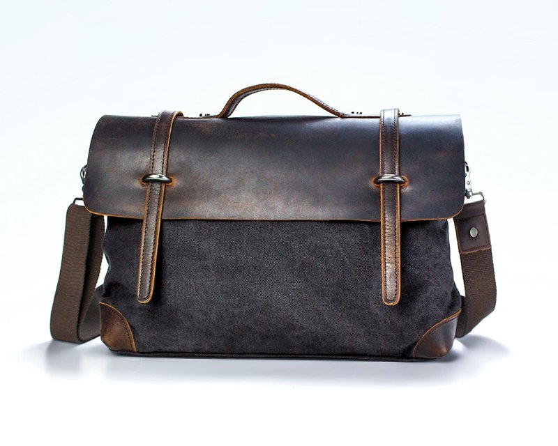 [二手買賣] 經典英式復古 牛皮革+帆布 側背包