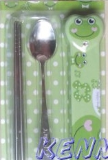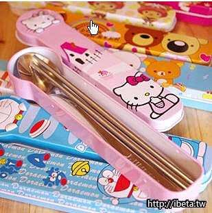 3.卡通不銹鋼湯匙/筷子鐵盒餐具組--$160