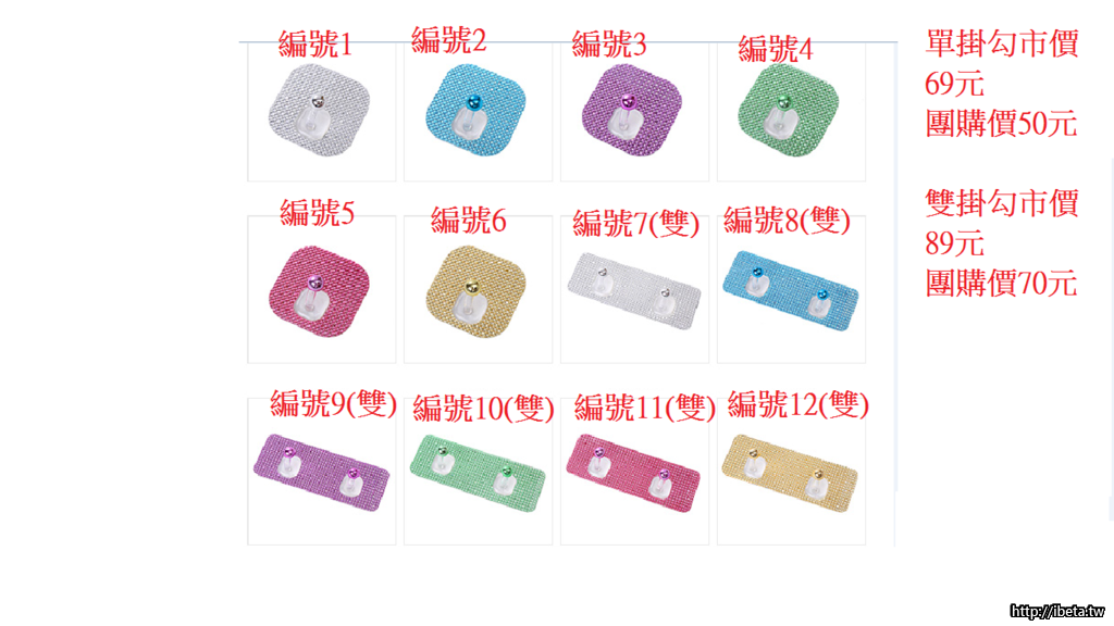 (三)單掛勾市價69元 團購價50元 雙掛勾市價89元 團購價70元