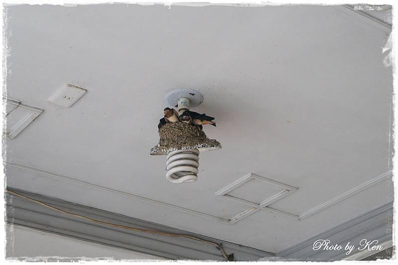 % }, u* X, N7 W6 k9 z" f6 K最近到處都看得到燕窩,不過這燕窩可厲害了,竟然蓋在燈罩上0 u# S9 [# i, {: G1 _