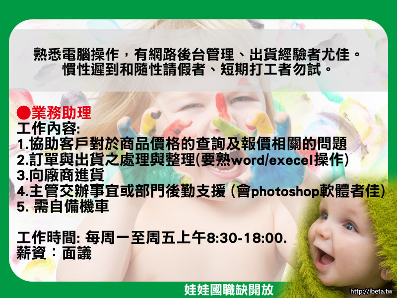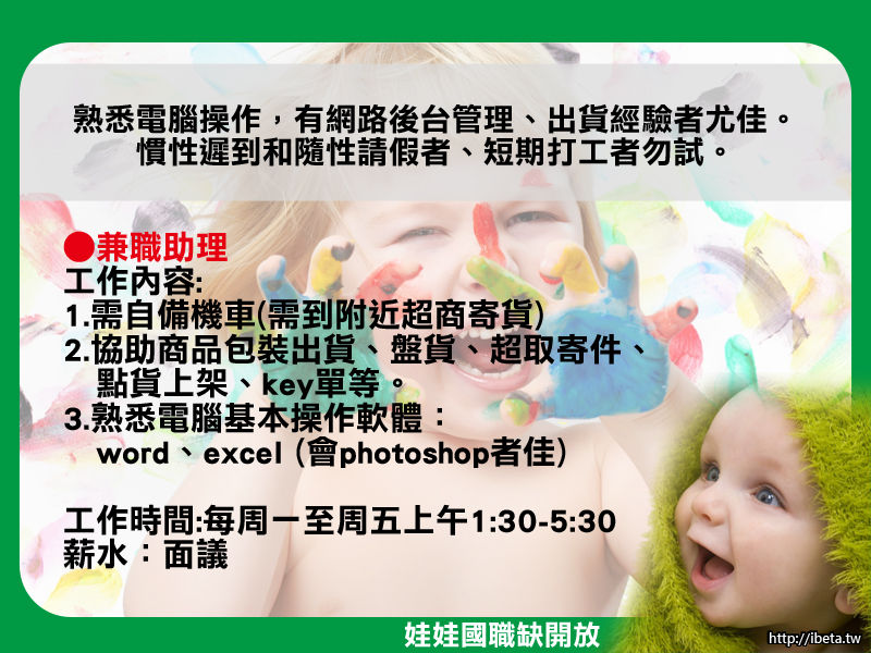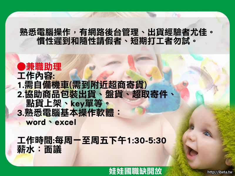 熟悉電腦操作,有網路後台管理、出貨經驗者尤佳。