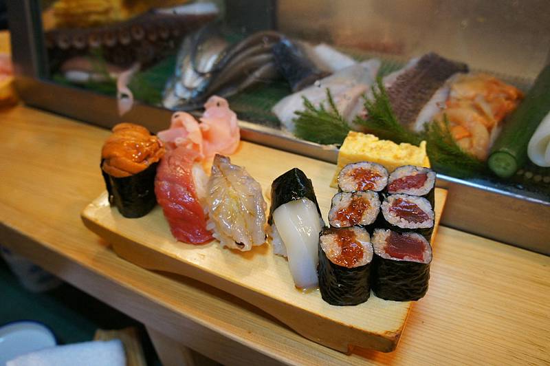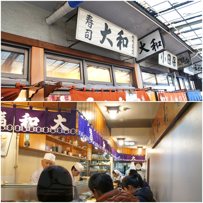 & B4 M7 K! G0 T w這趟日本行每天一定有一餐吃寿司,來日本不吃寿司太對不起自己了吧~要吃到最新鮮的寿司就一定要到築地市場,其中人氣最高的兩家店是大和寿司&寿司大