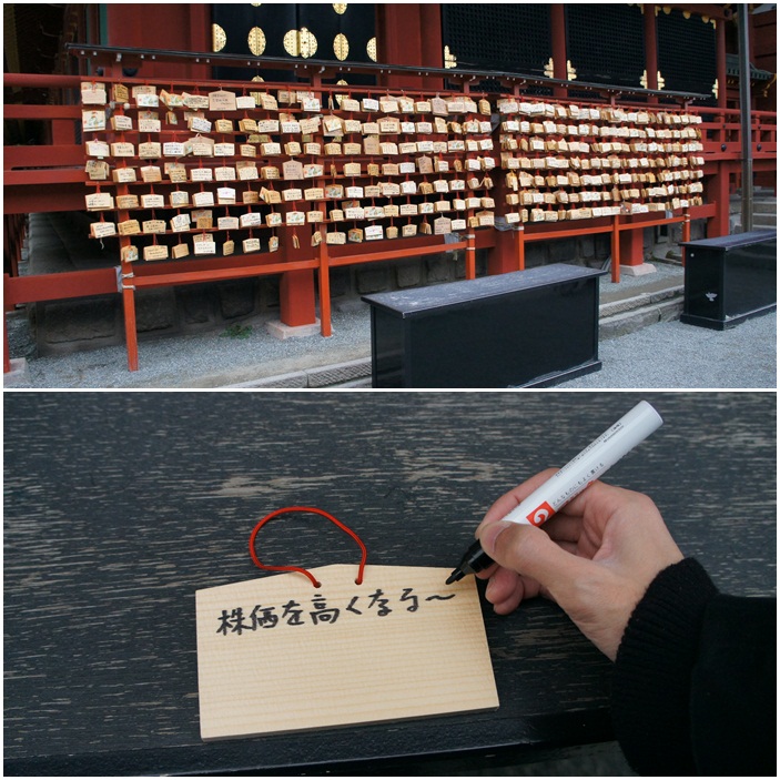 不免俗地買了"絵馬"來寫願望,各位知道我寫了啥嗎?哈哈~" k# ~. c+ U! g X) N