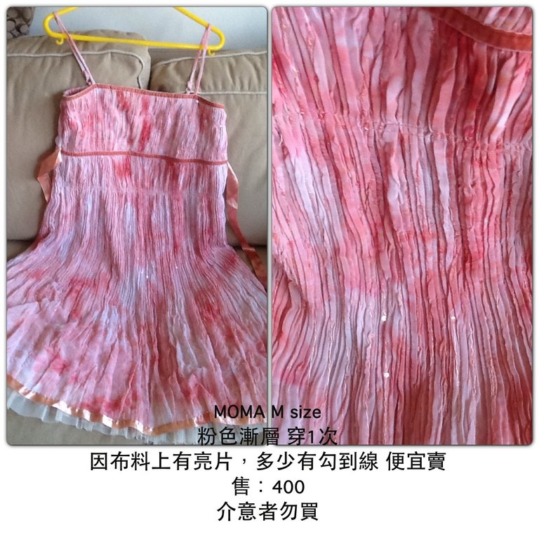 [二手買賣] 粉色細肩帶百褶洋裝 M size 便宜賣 |