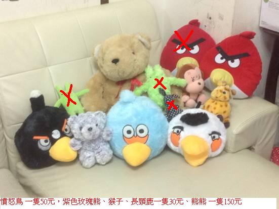[二手買賣] 賣玩偶憤怒鳥、熊、猴子 ..... 便宜出清
