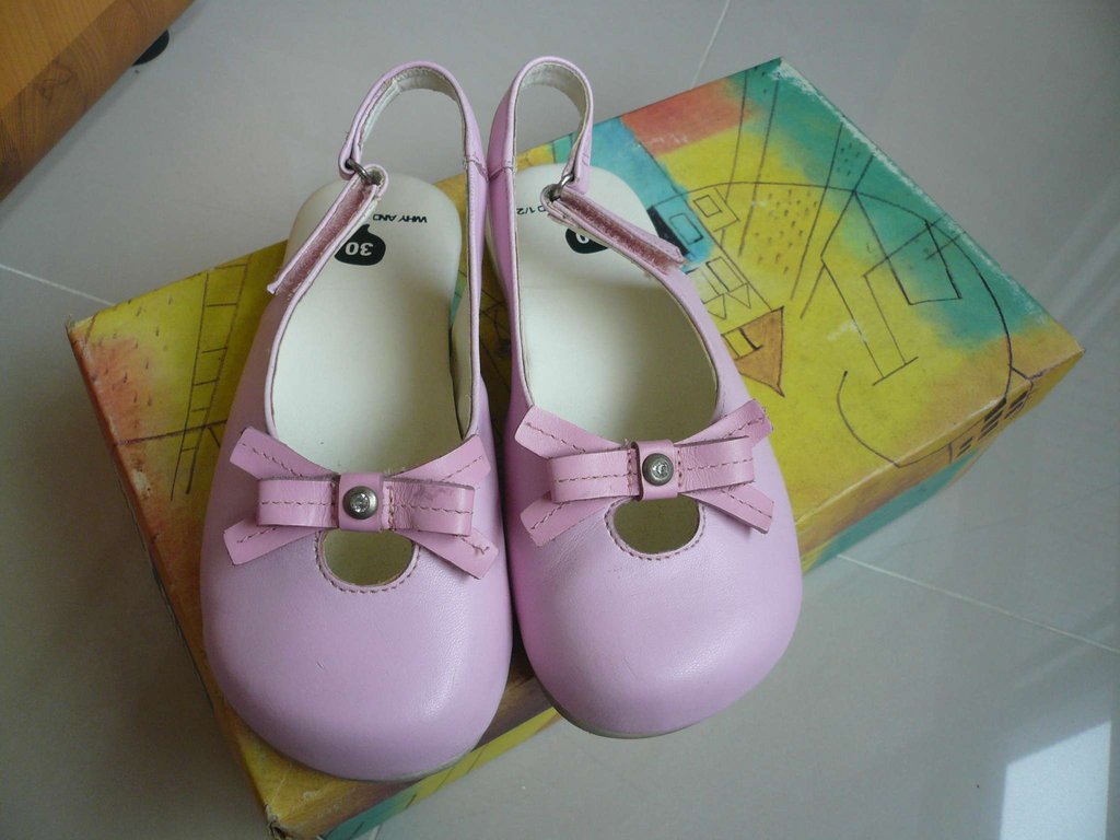 [二手買賣] why & 1/2 粉紅蝴蝶圓頭娃娃鞋/皮鞋/休閒鞋-30