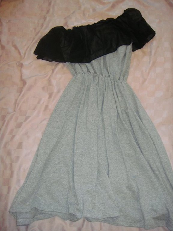 [二手買賣] 氣質灰色斜肩洋裝 斜肩處黑色紗點綴