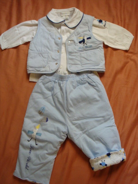 [二手買賣] 愛的世界大嘴鳥粉藍色兩面穿撲棉長褲+襯衫送背心 |