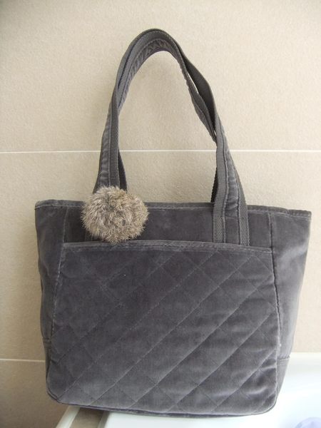 [二手買賣] 美國 Aeropostale 格紋車縫天鵝絨 水餃包 深灰色