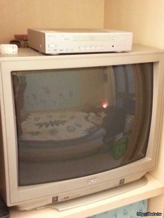 為舊型電視,座有缺角,購買送電視贈送DVD一臺(樣式為置於電視上那臺)
