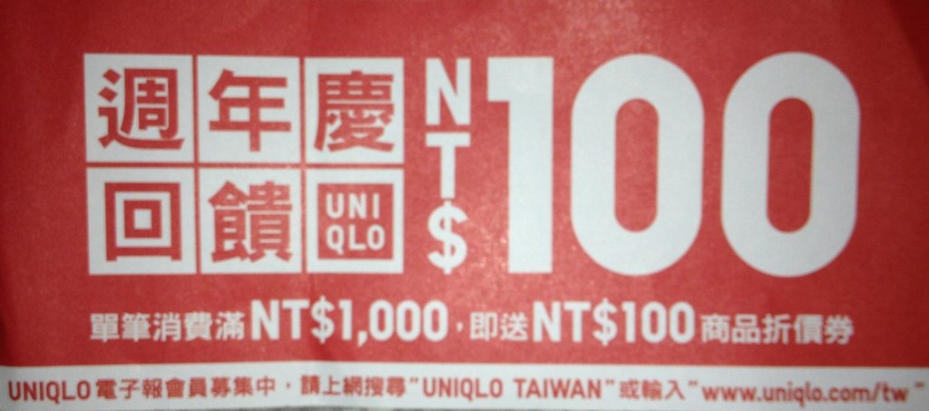 [免費送人] UNIQLO折價卷100元(限環球中和店) |