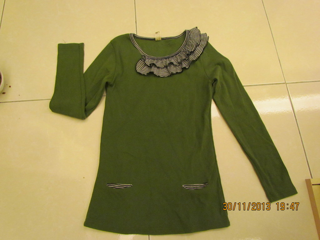 女長版綠色蕾邊上衣,有口袋, 五十元