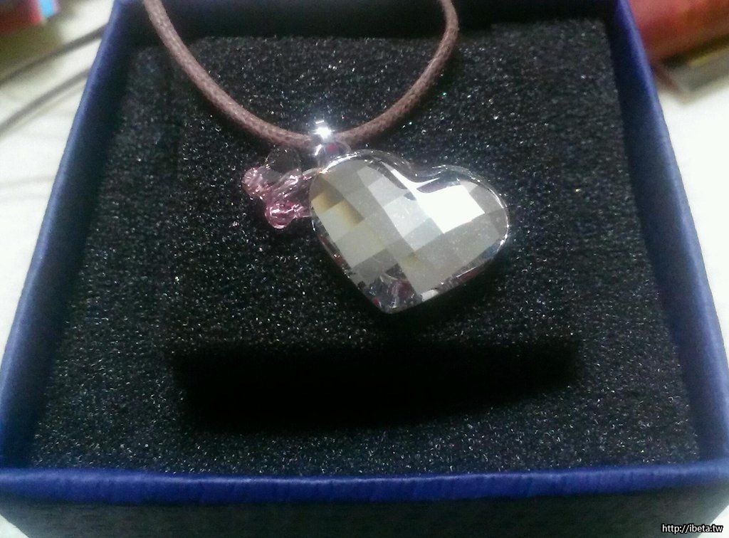 [二手買賣] 施華洛世奇愛心水晶項鍊(附皮繩鍊)