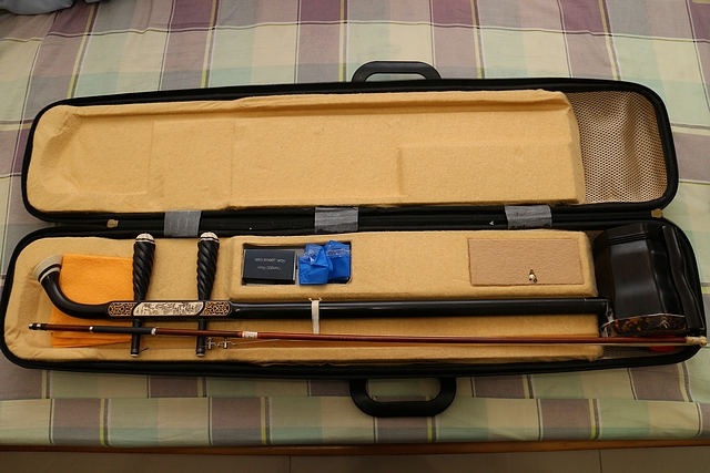 含琴盒(背帶有加長),備用琴碼,松香,調音器,琴弦微調器二個,保養臘