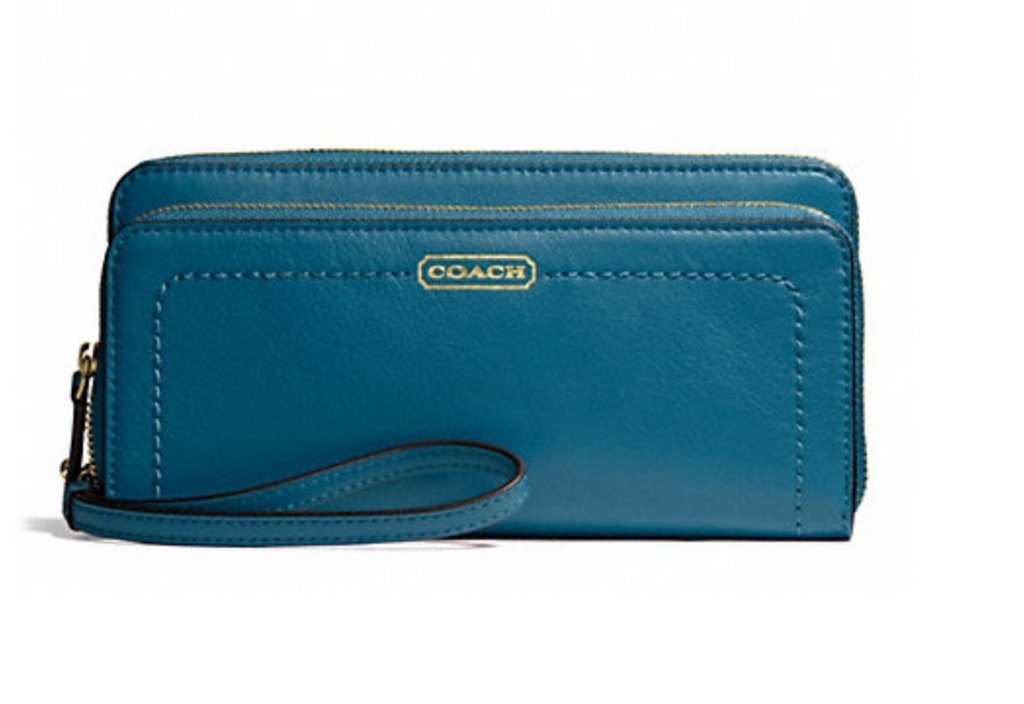 [二手買賣] COACH藍色拉鍊雙層長夾 全新