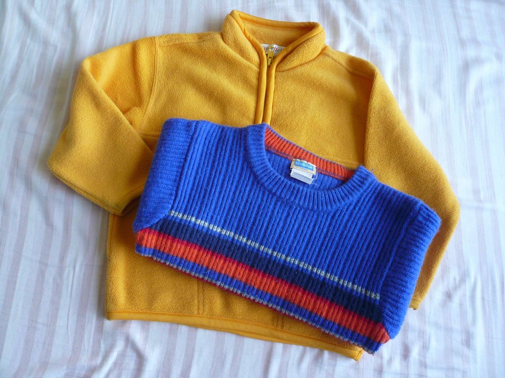 兩件一起賣.大小差不多.都是差不多90-100cm可以穿.男女生都能穿.黃色那件輕柔保暖.易乾.冬天首選.不過袖口有點髒.有拍出來.另一件愛的世界毛衣兩邊袖子比較有毛球.其他狀況還ok.洗標已經不太清楚.兩件都是保暖首選.穿不下了一起賣.