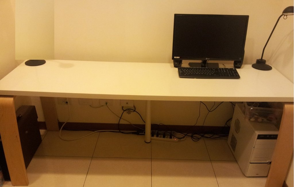 [二手買賣] IKEA 白色雙人書桌 +IKEA 椅子兩張+IKEA 黑色檯燈 |