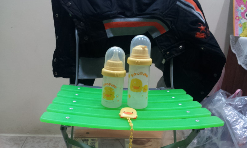 [二手買賣] 九成新黃色小鴨奶瓶兩個,奶嘴夾一個 |