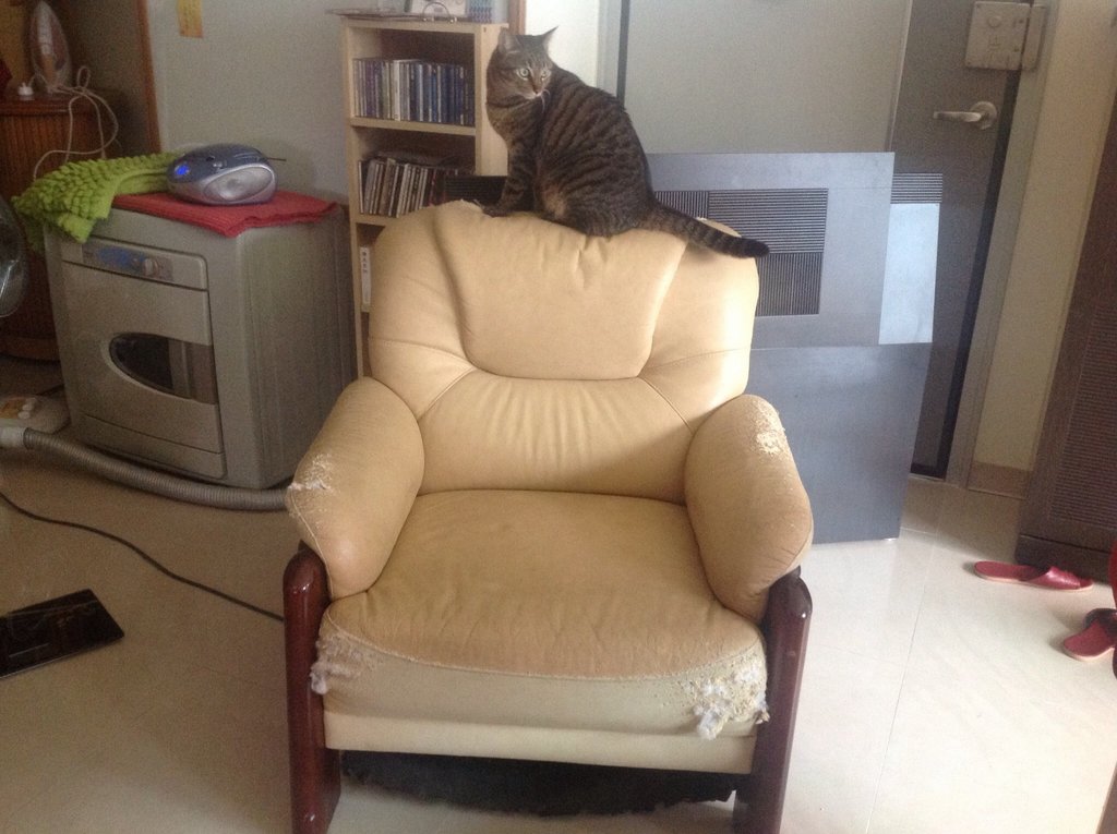 [免費送人] 單人真皮沙發 被貓抓破 有人想拿去換皮翻新嗎?(已搬走) |