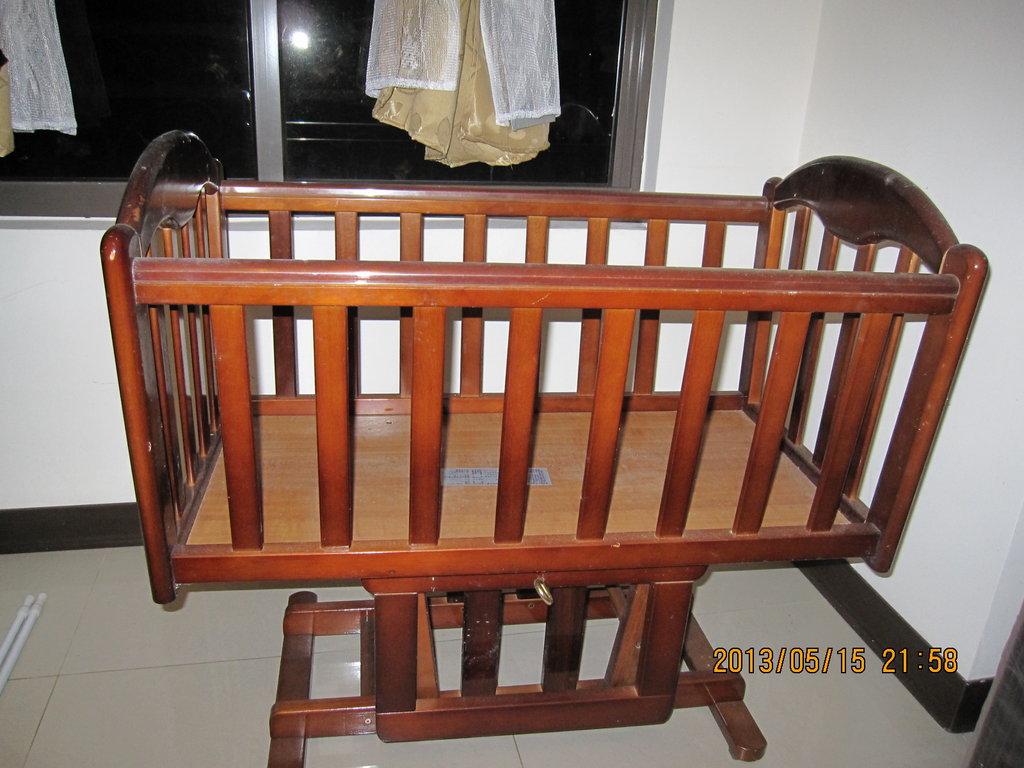 此嬰兒床也可當搖床...