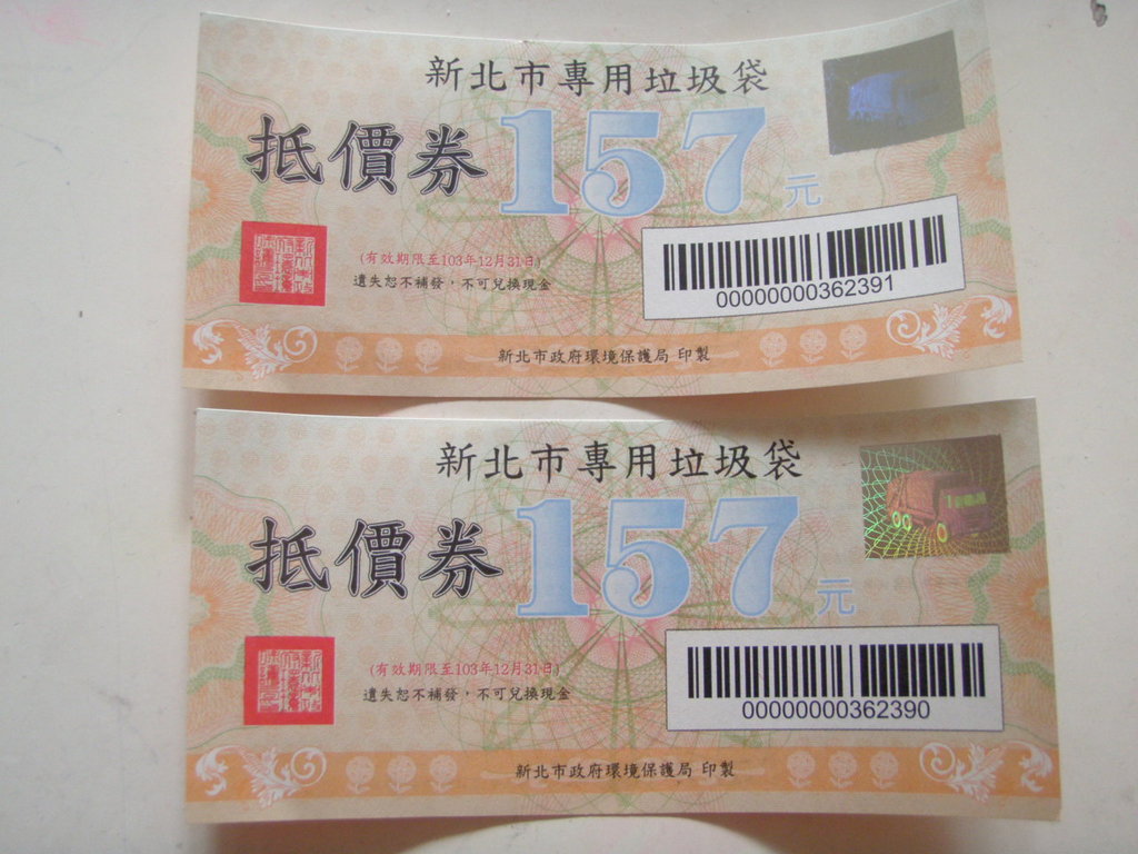 [二手買賣] 新北市專用垃圾袋抵價卷157元有2張~讓 |