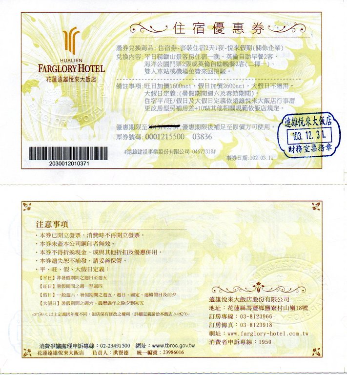 [二手買賣] 出售花蓮悅來優惠券