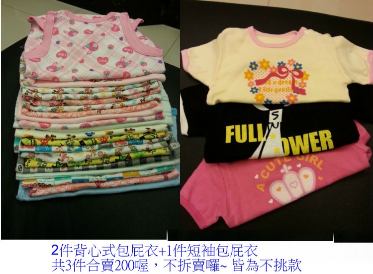 2件背心式包屁衣+1件短袖包屁衣,共3件合賣200喔,不拆賣囉~