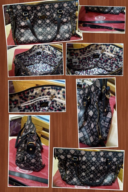 此包當初是看了田馥甄的你太倡狂MV而中意購買的,此包是粉紅宣言系列的黑底粉紅LOGO, 可肩背,可斜背,材質為牛皮,定價5280元,當初是預購九折4752元。背袋長度可至專櫃修剪適合個人身高的長度。