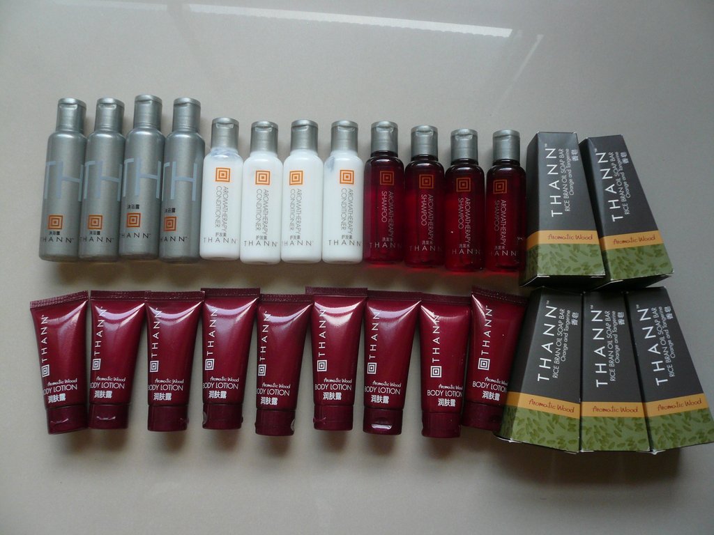 1.全新涵庭Thann旅行組.香木系列.一組含有沐浴乳37ml,洗髮乳30ml,護髮乳30ml,乳液22ml.共四組.一組賣60.其他還有乳液數瓶.一瓶賣20.香皂37g/個.一個賣50.都是2013年底到2014年初製造.保存期限2年.家人大陸出差住五星級酒店的備品.因為房間等級升等,所以每天都會多一組.因為是大陸的酒店.所以寫的是簡體字.不過確定是Thann授權的備品.