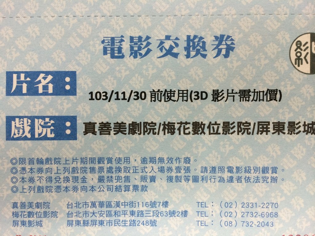 [二手買賣] 售電影交換卷4張 每張100元(已售出) |