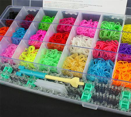 塑膠盒、吊飾、S扣、編織器、約7公分長的小勾針、約4400條橡圈