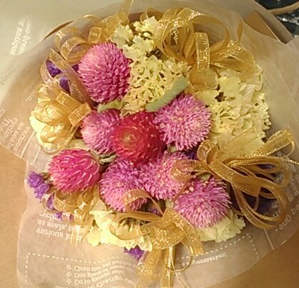 花材:依設計作調整 計有 星辰花 山防風 兔尾草 千日紅 金色緞帶 法式蝴蝶結等,每一款的花材與包裝會略有不同.若有特別指定請事先說明.
