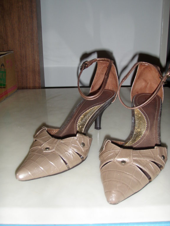 [二手買賣] 少穿的22.5金咖啡色高跟鞋賣100元 |
