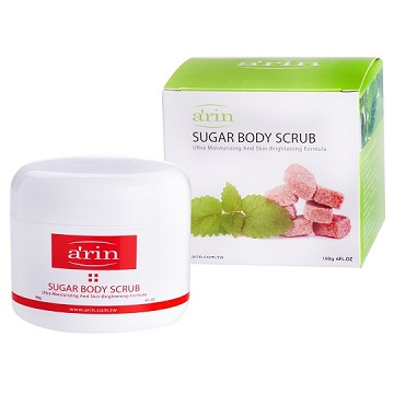 arin 研發團隊推出獨特創新的身體淨白保濕去角質魔粒,是以大顆粒的圓潤紅糖 ( Brown Sugar ) 混合顆粒細緻的海藻糖來取代海鹽或果仁研磨顆粒;不會因為太過粗糙或是角度太過尖銳而傷害到脆弱的肌膚,它可以溫和地帶走表面老廢角質和毛孔間的髒汙!除了一週例行的去老廢角質保養外,還可去除全身手肘、膝蓋、胯下較容易磨擦暗沉處,天天局部使用,全身粗皮拋光光,膚色也淨白!