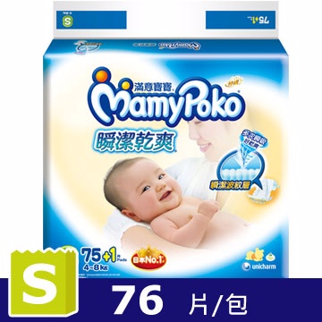滿意寶寶 瞬潔乾爽紙尿褲 S (75+1)片/包        共有2包 每包300元